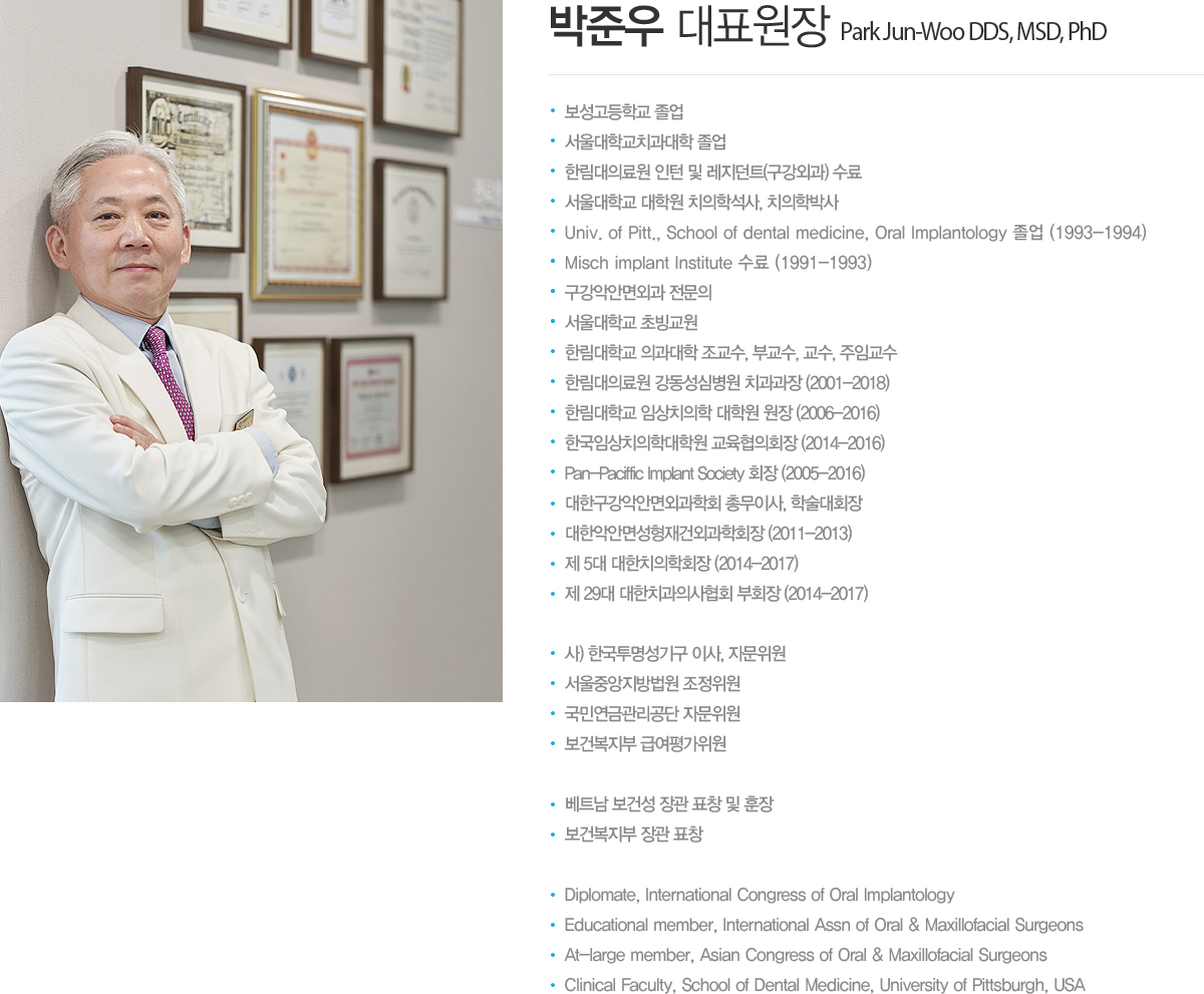 ¹ÚÁØ¿ì ´ëÇ¥¿øÀå Park Jun-Woo DDS, MSD, PhD